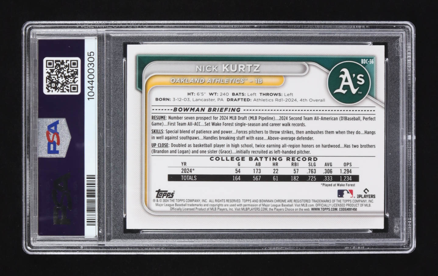 Card has been graded (PSA) 9. Please see photos for details regarding the condition of the card (Oakland Athletics).