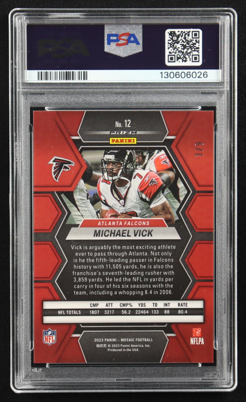 Michael Vick 2023 Panini Mosaic Mosaic Red Wave #12 #3/9 (PSA 10)