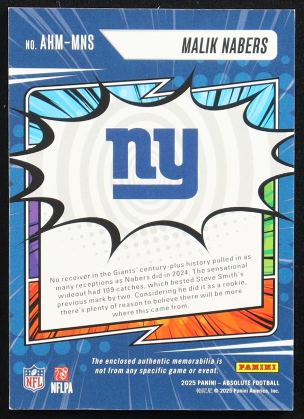 Malik Nabers 2025 Absolute Absolute Heroes Memorabilia #3 #061/115