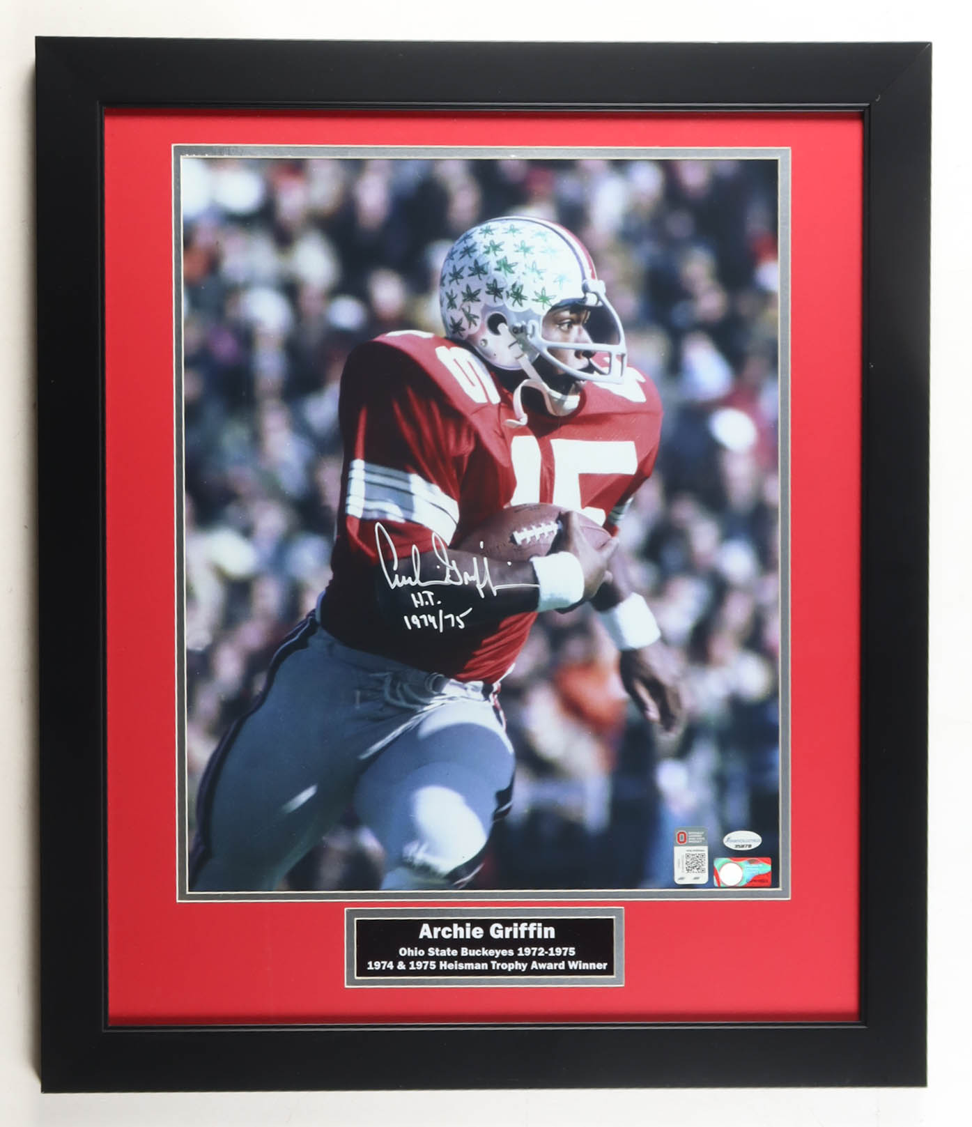 Archie Griffin Signed Ohio State Buckeyes Custom Framed Photo Display Inscribed "HT 1974 / 75" (Sports Collectibles)