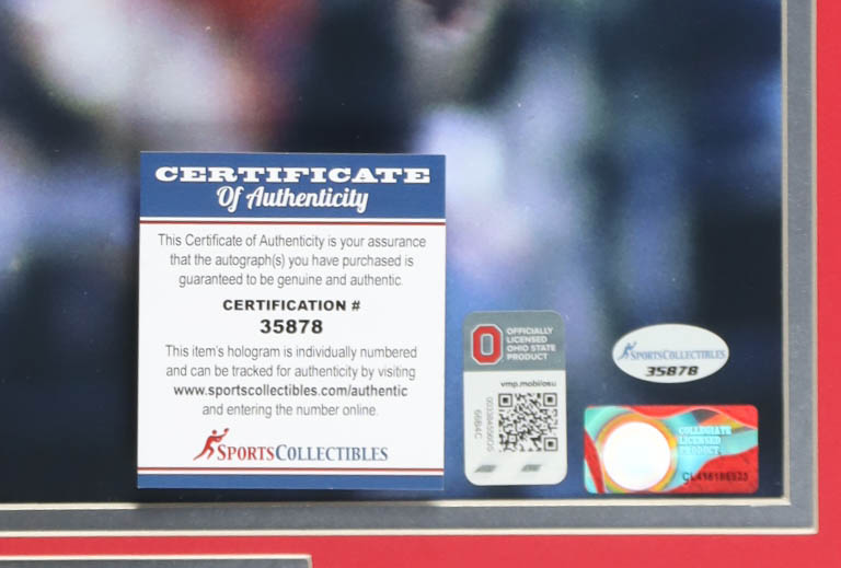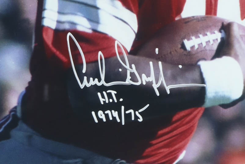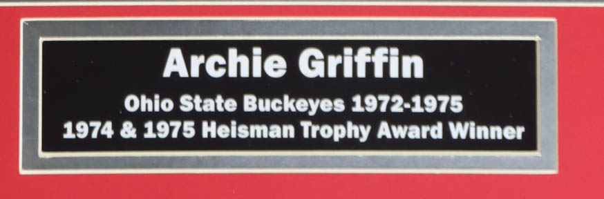 Custom frame measures approximately 23" x 27" in size and has been hand-signed and inscribed by Archie Griffin. Please see photos for details regarding the item.