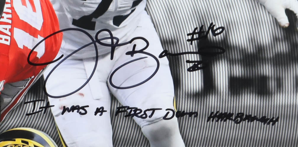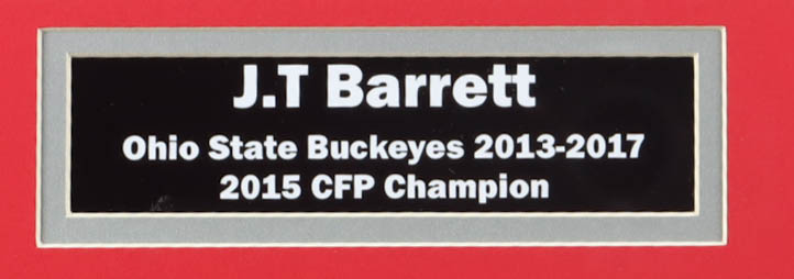 J. T. Barrett Signed Ohio State Buckeyes Custom Framed Photo Display Inscribed "It Was A First Down Harbaugh" (Sports Collectibles)