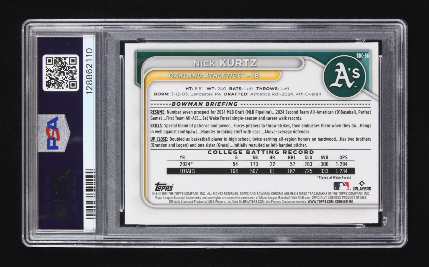 Nick Kurtz 2024 Bowman Chrome Draft S/E #BDC-56 RC (PSA)