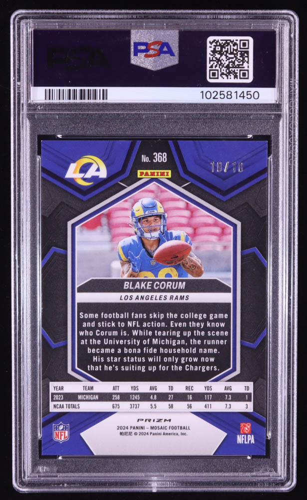 Blake Corum 2024 Panini Mosaic Mosaic Gold #368 RC #10/10 (PSA 9)