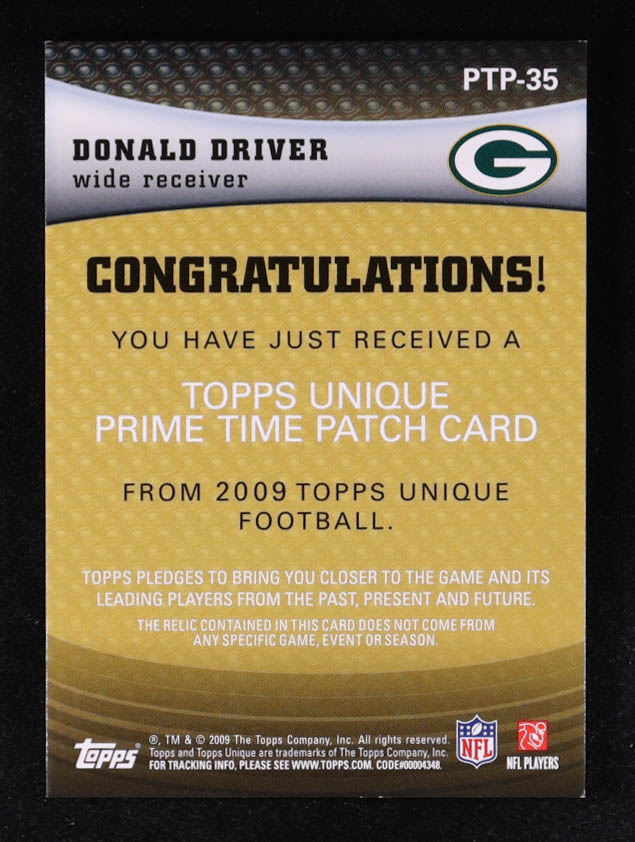 Donald Driver 2009 Topps Unique Prime Time Patches Relic Game-Worn #PTP-35 #60/75