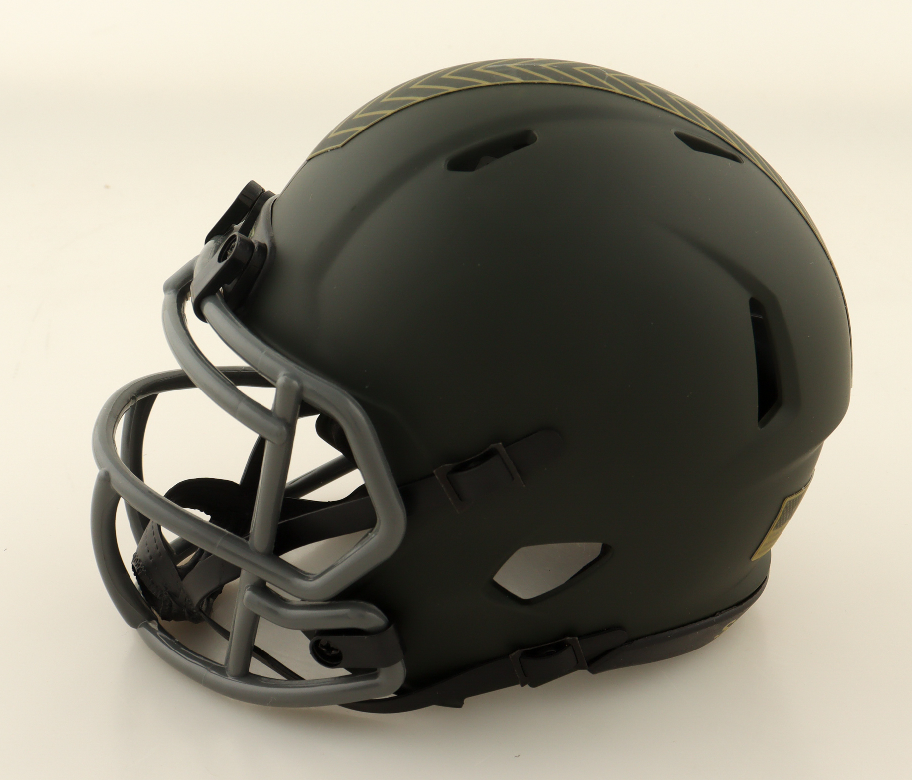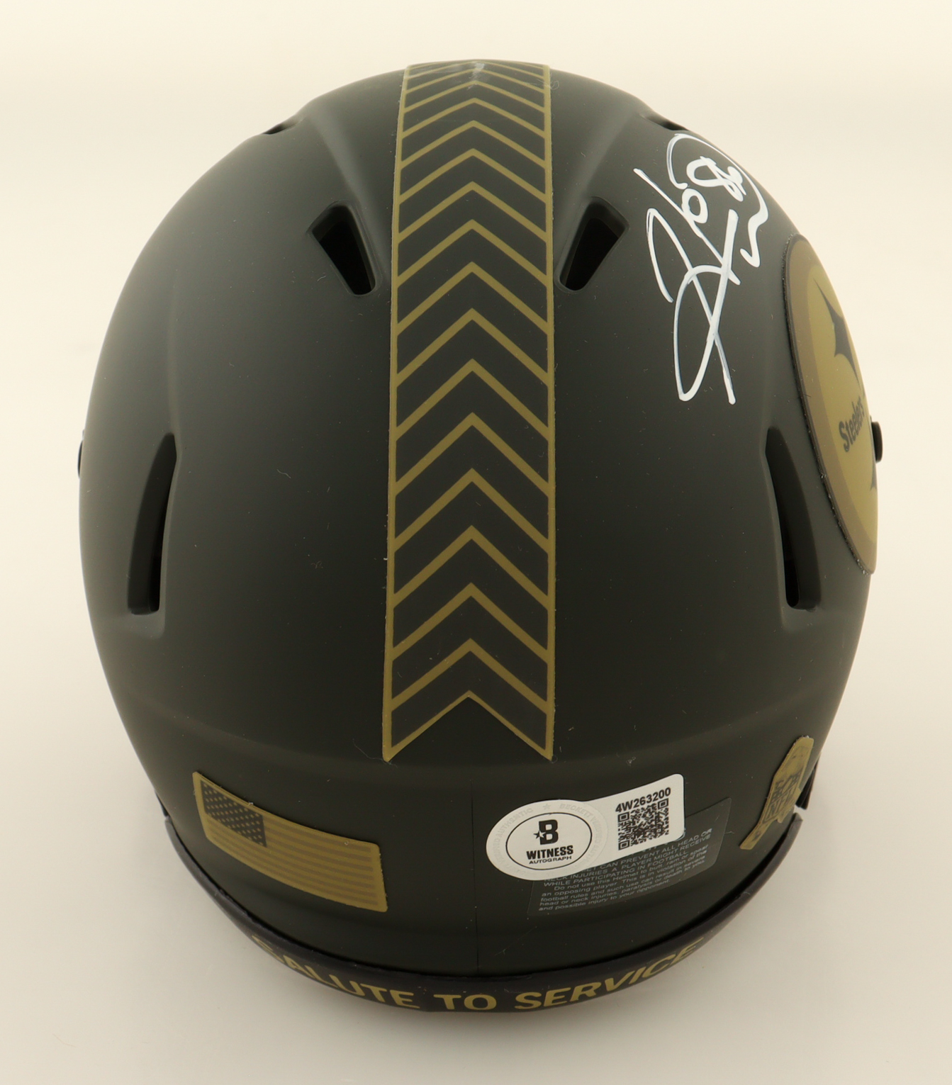 Riddell Pittsburgh Steelers Salute To Service Alternate Speed mini helmet. Hand-signed by Hines Ward (HOF).