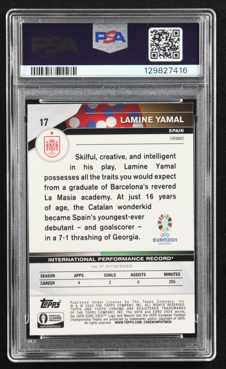 Lamine Yamal 2024 Topps Chrome UEFA Euro #17 RC (PSA 9)