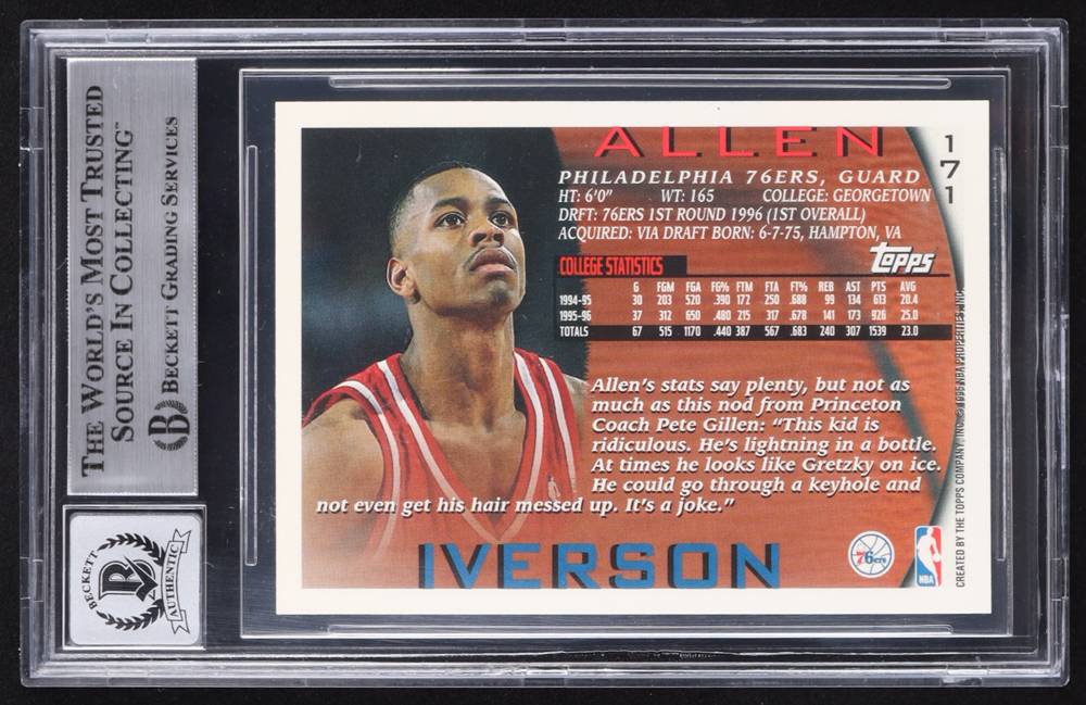 Allen Iverson Signed 1996-97 Topps #171 RC (BGS | Auto 10)