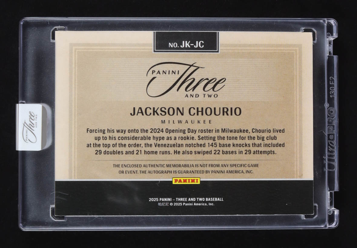 Jackson Chourio 2025 Panini Three and Two Jersey Autographs #JK-JC #38/99