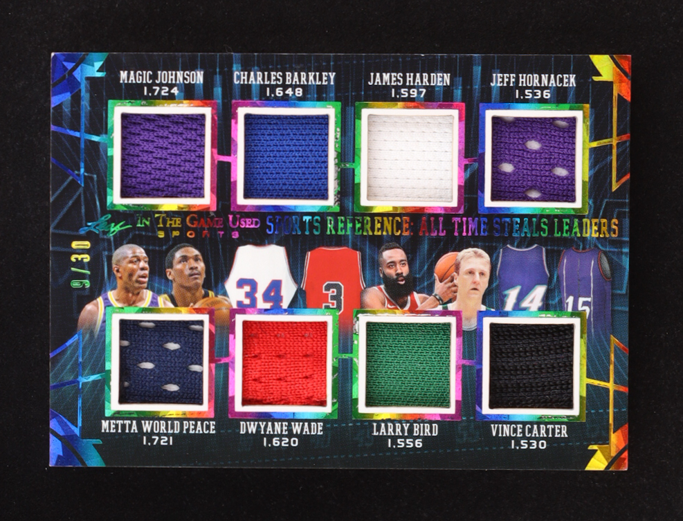 2024 Leaf ITG Used Sports Reference All Time Steals Leaders Crystal Rainbow #SR14 Magic Johnson / Metta World Peace / Charles Barkley / Dwyane Wade / James Harden / Larry Bird / Jeff Hornacek / Vince Carter #9/30