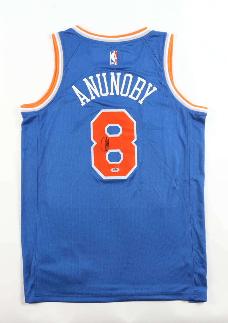 Nike jersey. Everything pressed on, size 48. Hand-signed by OG Anunoby (New York Knicks).