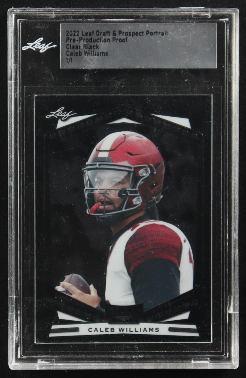 Caleb Williams 2022 Leaf Draft & Prospect Portrait Pre-Production Proof Clear Black RC #1/1 (Leaf)