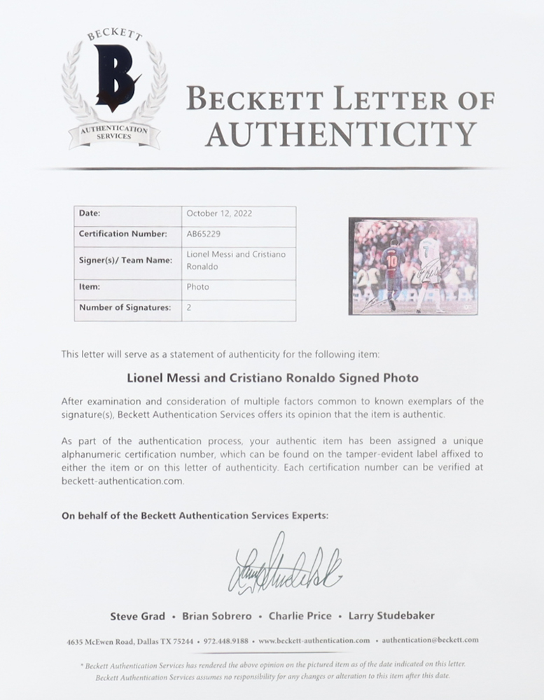 Cristiano Ronaldo & Lionel Messi Signed 12x16 Photo (Beckett)