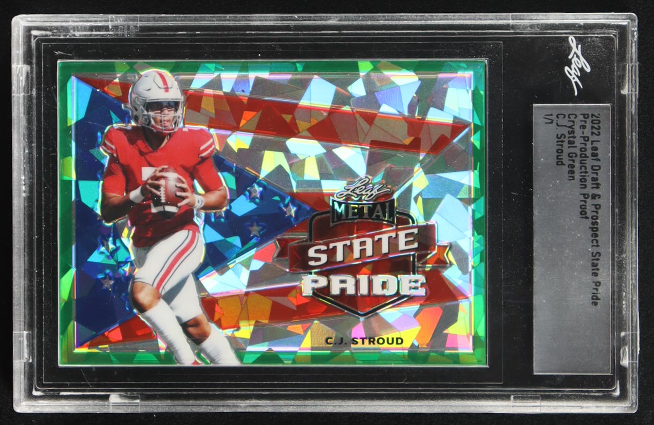 CJ Stroud 2022 Leaf Metal State Pride Pre-Production Proof Crystal Green RC #1/1 (Leaf)