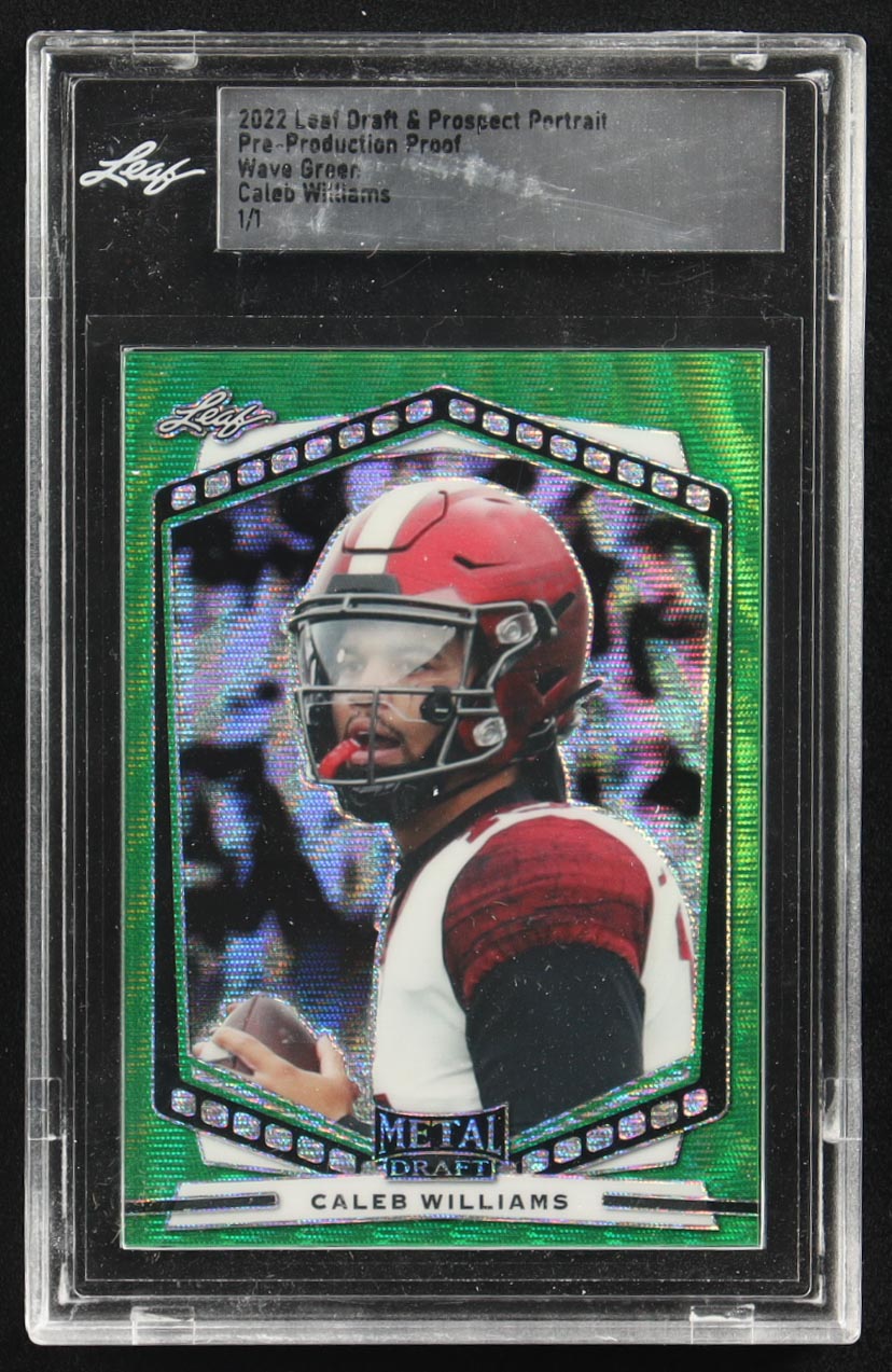 Caleb Williams 2022 Leaf Draft & Prospect Portrait Pre-Production Proof Wave Green RC #1/1 (Leaf)