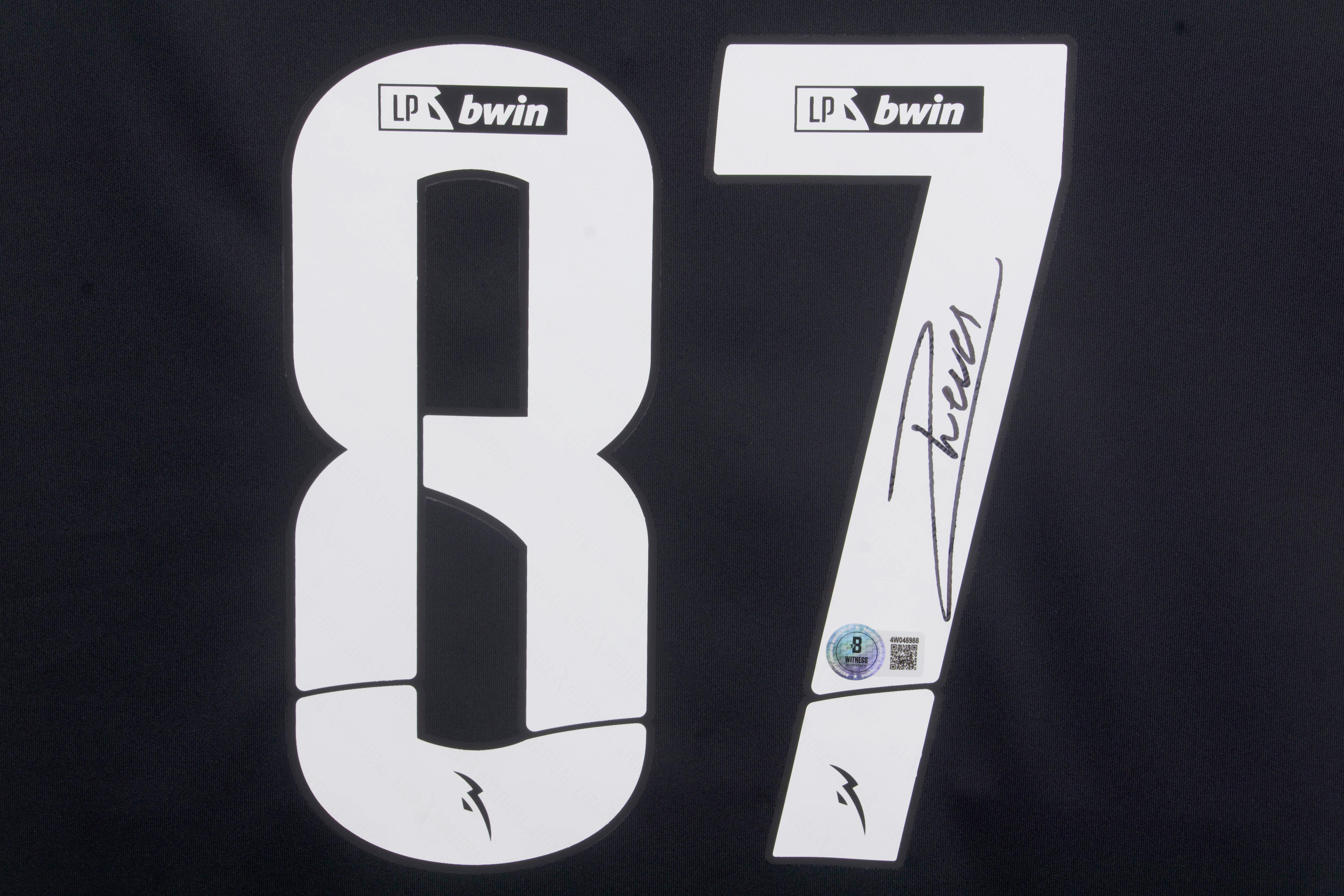 Adidas jersey with everything pressed on, size L. Hand-signed by Joao Neves.