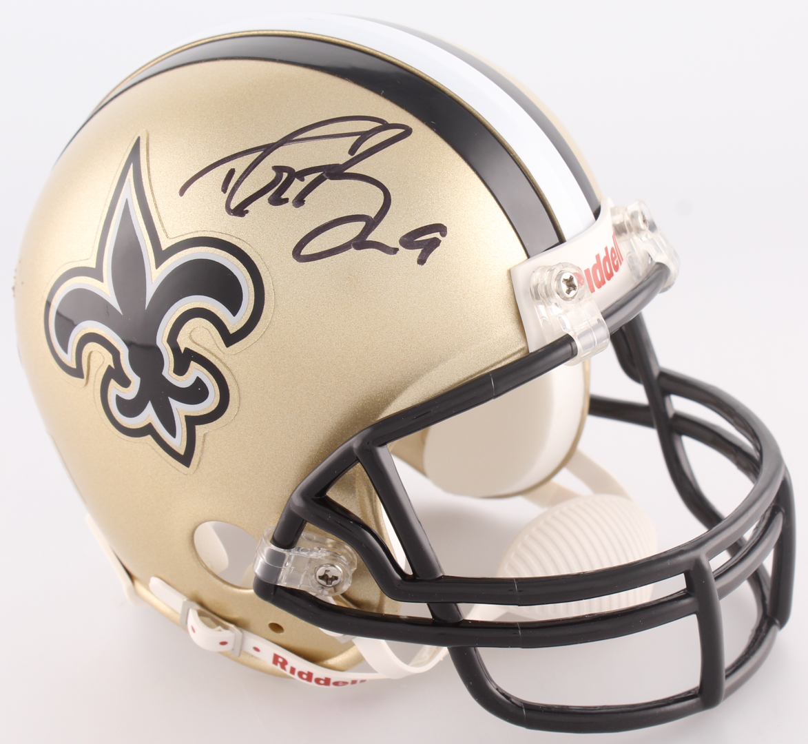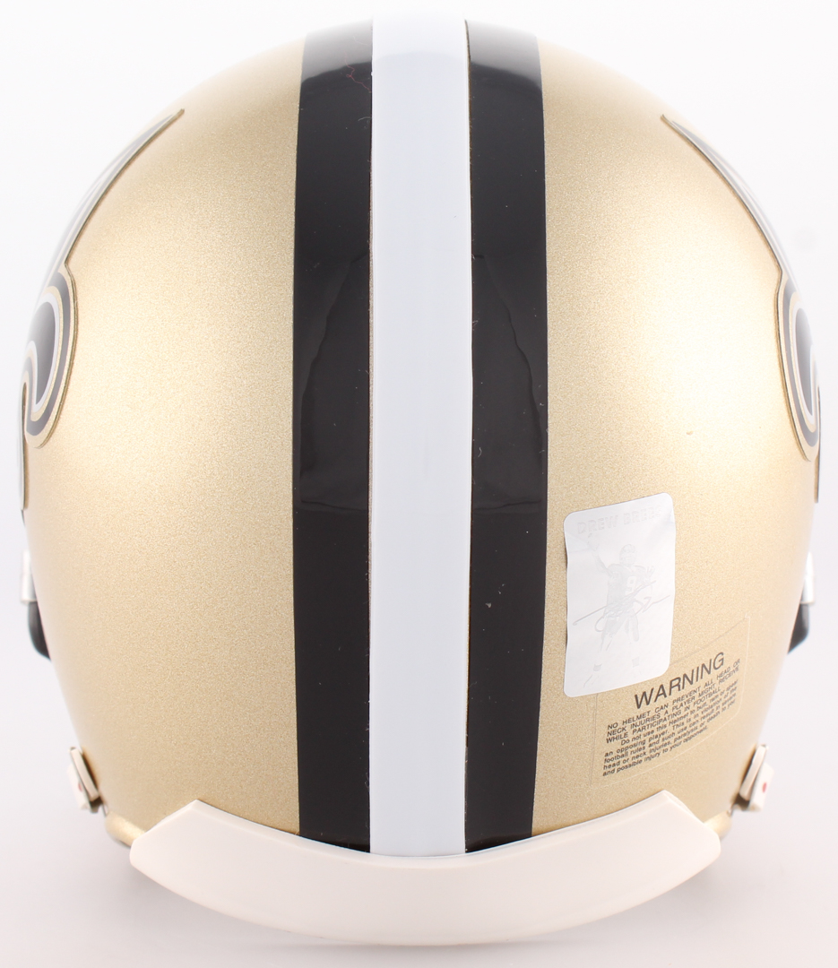 Riddell New Orleans Saints mini-helmet. Hand-signed in black felt tip pen by Drew Brees (Saints).