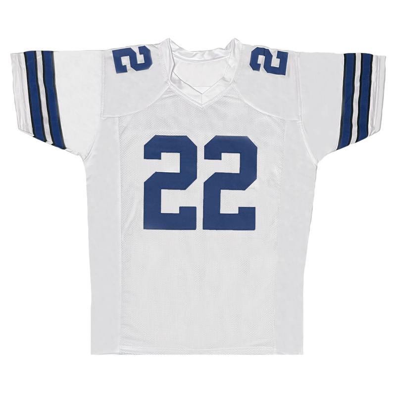 Custom jersey with everything sewn on, size 48. Hand-signed by Emmitt Smith (HOF).