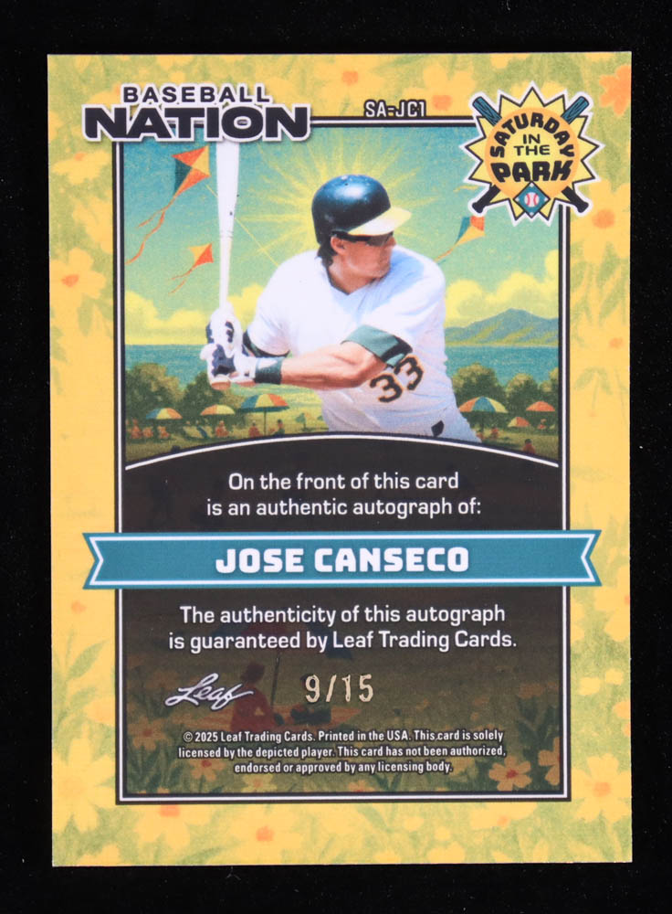 Jose Canseco 2025 Leaf Baseball Nation Saturday In The Park Autograph Silver Sparkle #SAJC1 #09/15