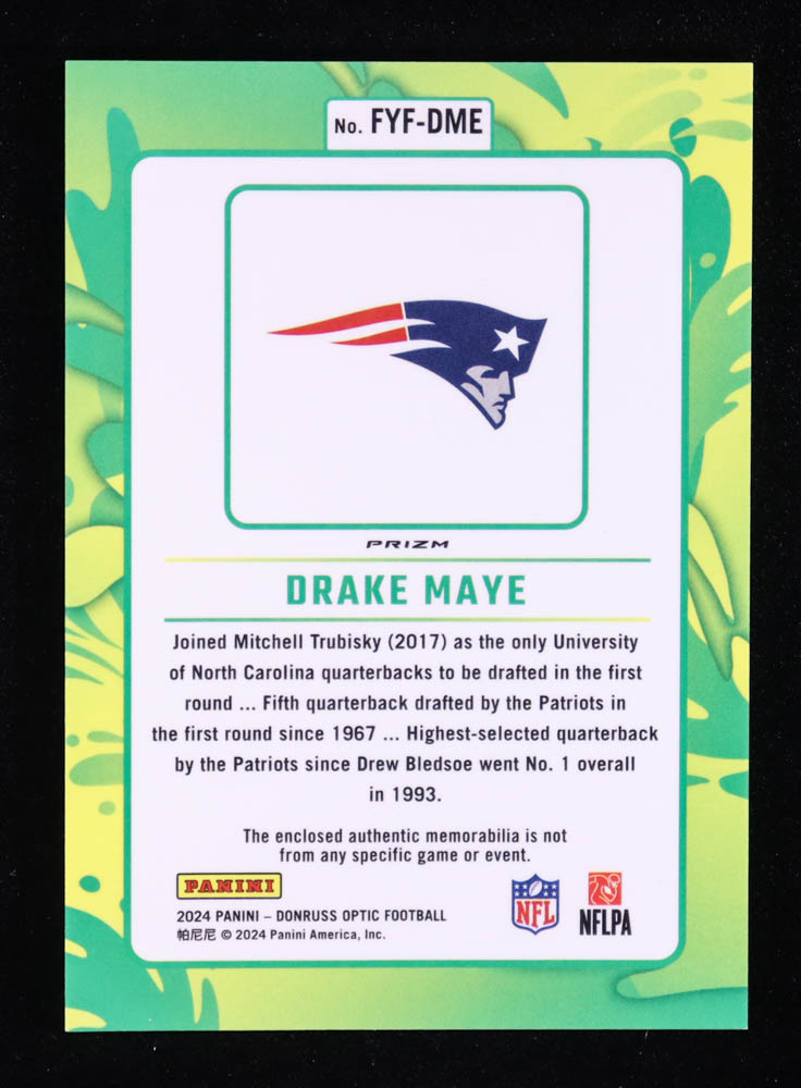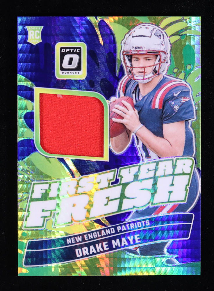 Drake Maye 2024 Donruss Optic First Year Fresh Jerseys Blue Hyper #12 RC