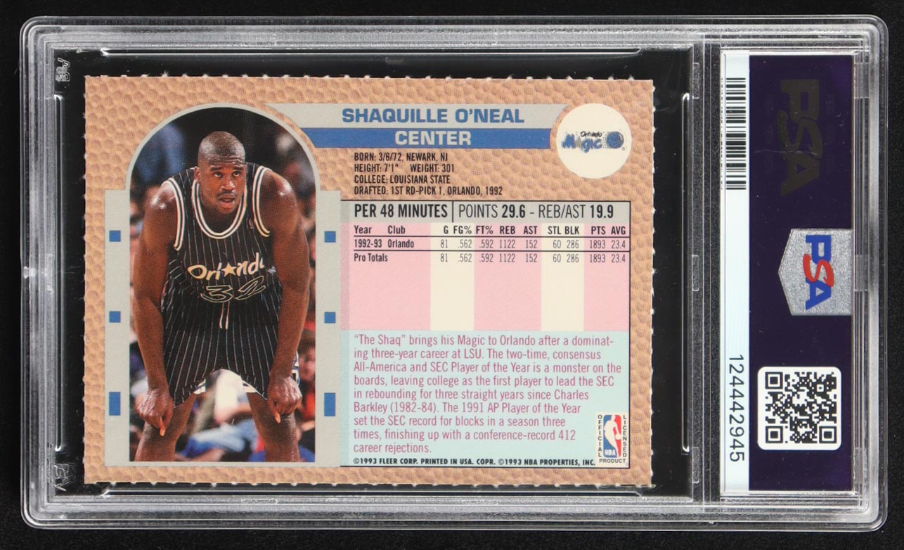 Shaquille O'Neal 1992-93 Fleer NBA Rising Stars Magazine Sheet #NNO RC (PSA 8)