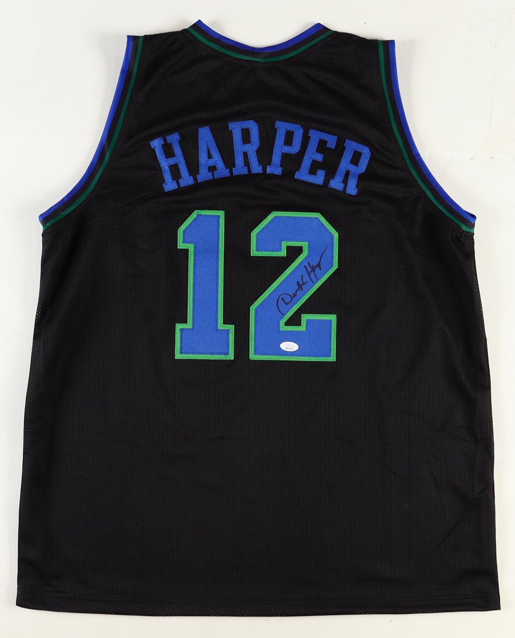 Custom jersey with everything sewn on, size XL. Hand-signed and inscribed by Derek Harper (Dallas Mavericks).