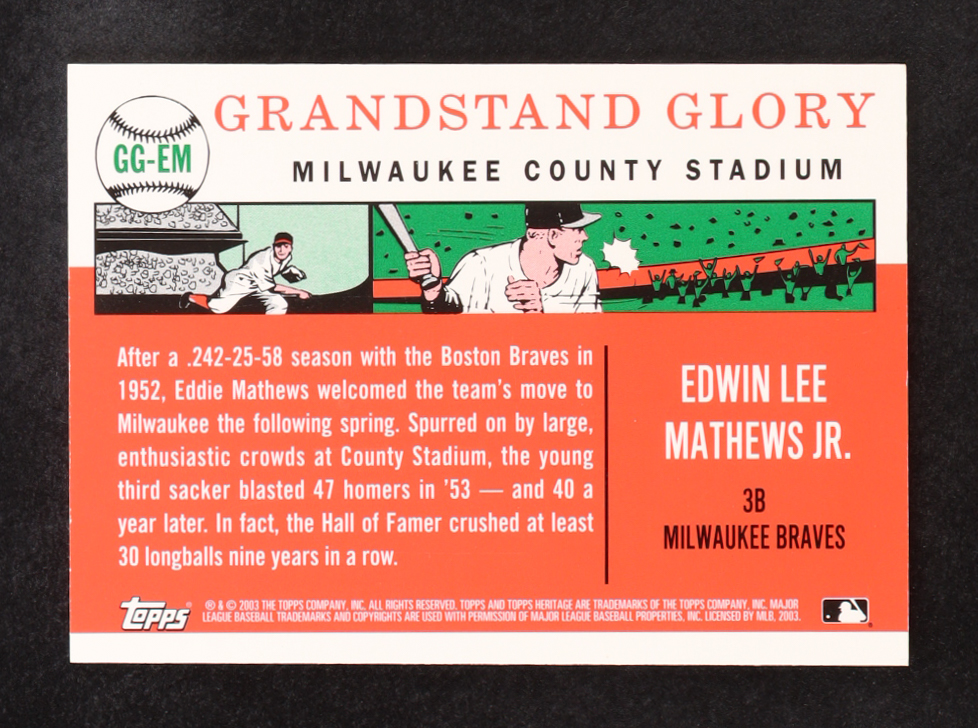 Eddie Mathews 2003 Topps Heritage Grandstand Glory Stadium Relics #EM