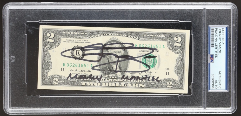 Johnny Manziel Signed $2 Two Dollar U.S. Currency Inscribed "Money Manziel" (PSA)