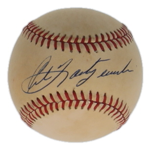 Rawlings Official American League Baseball. Hand-signed by Carl Yastrzemski (Boston Red Sox, HOF). Please note, the baseball is naturally toned and stained.
