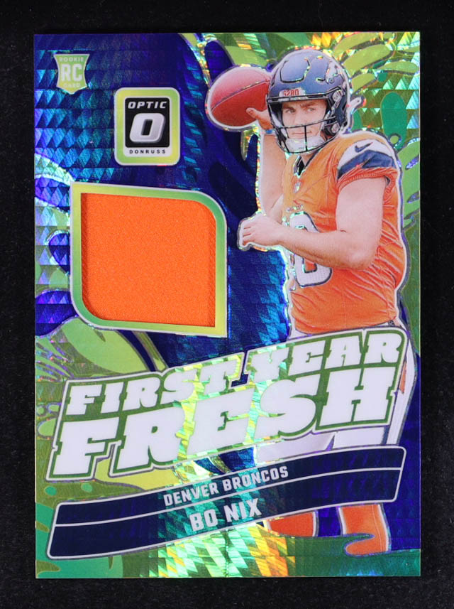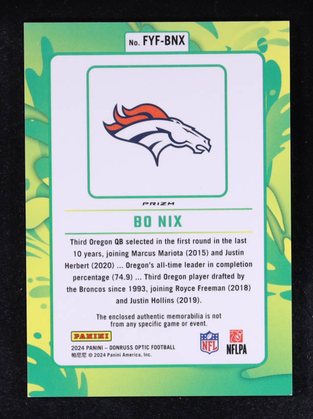 Bo Nix 2024 Donruss Optic First Year Fresh Jerseys Blue Hyper #5 RC