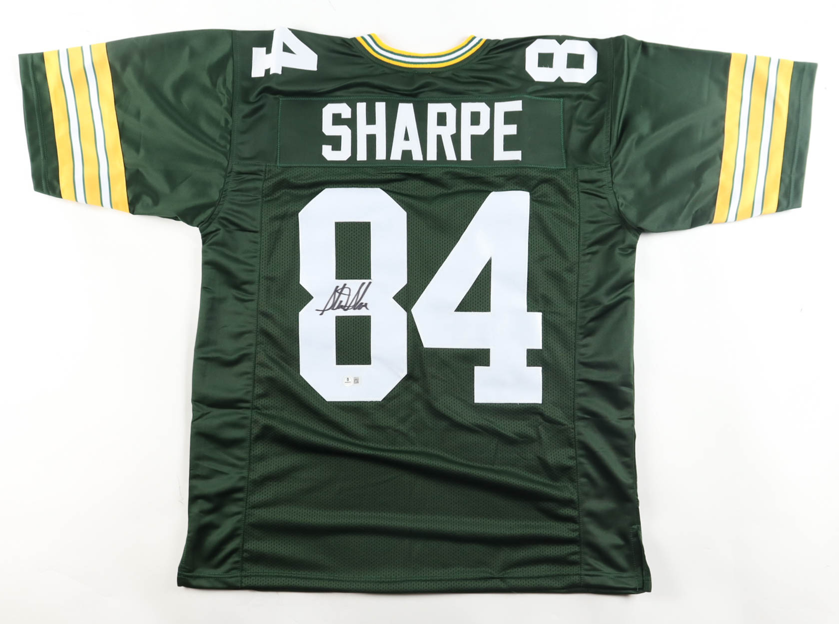 Custom jersey with everything sewn on, size XL. Hand-signed by Sterling Sharpe (HOF).