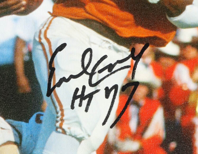 Canvas print measures 16" x 20.5" in size and has been hand-signed and inscribed by Earl Campbell (HOF).