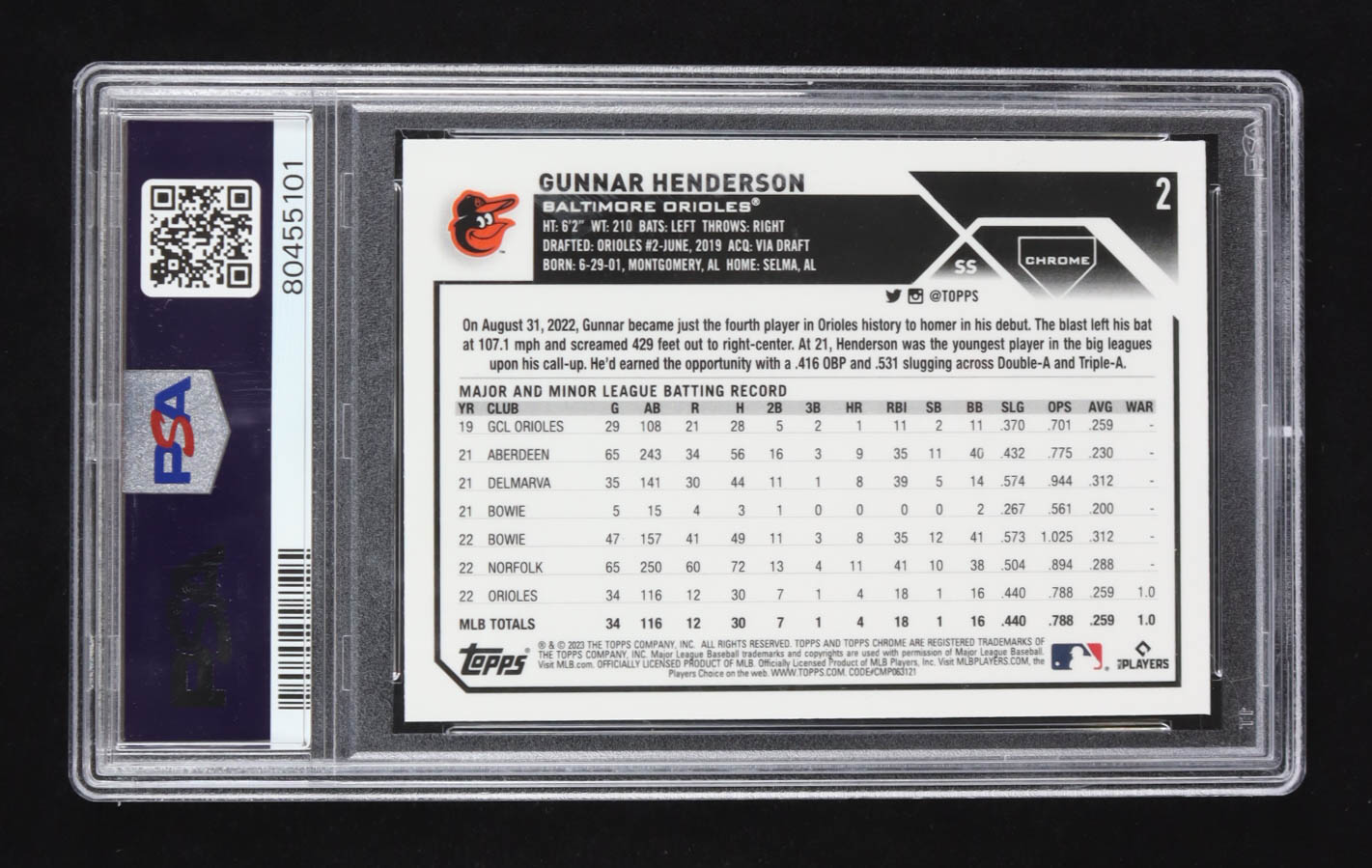 Gunnar Henderson 2023 Topps Chrome #2 RC (PSA 9)