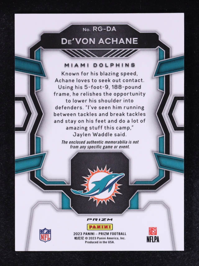 De'Von Achane 2023 Panini Prizm Rookie Gear Prizms Purple Pulsar #10 RC