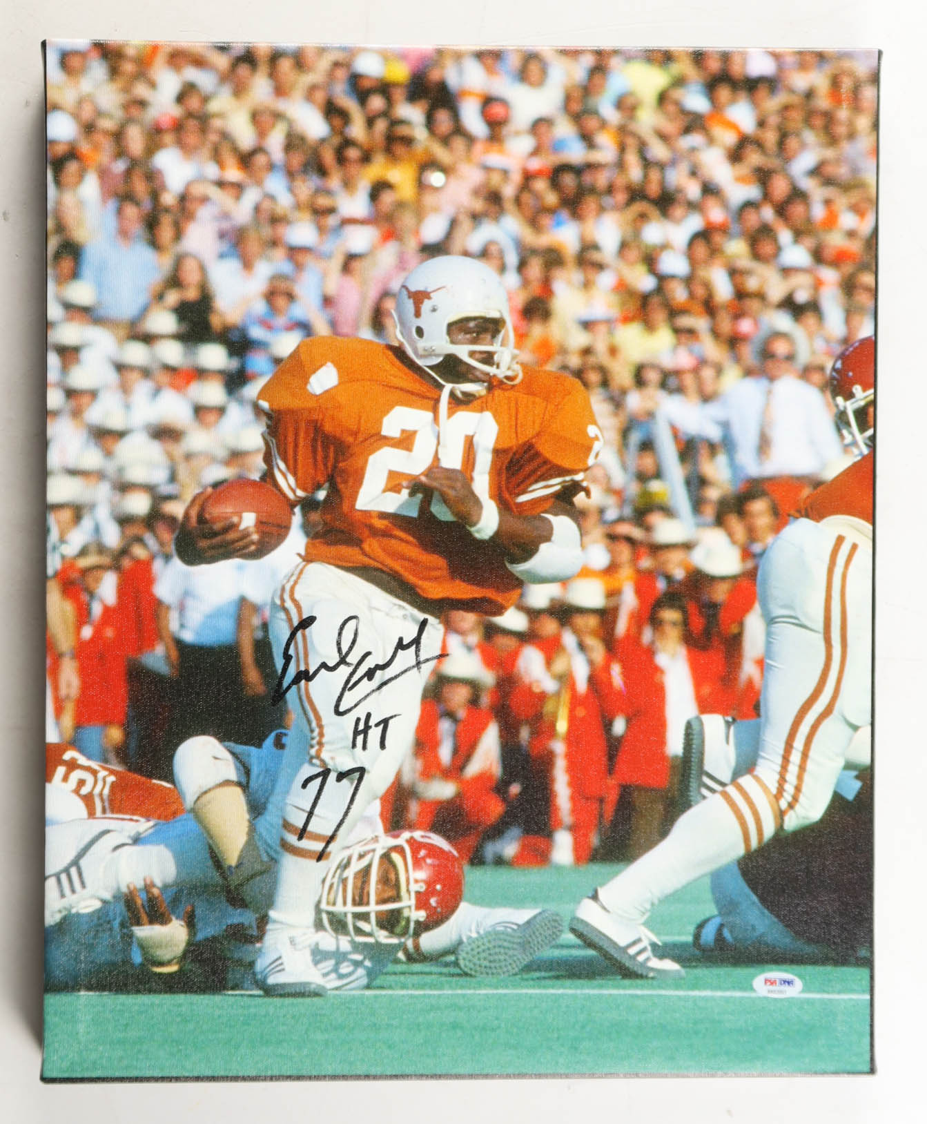 Earl Campbell Signed Texas Longhorns Canvas Print Inscribed "HT 77" (PSA)