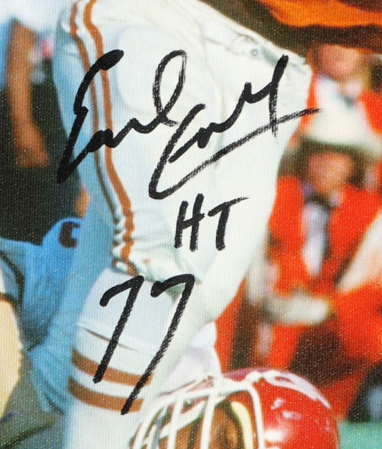 Canvas print measures 16" x 20.5" in size and has been hand-signed and inscribed by Earl Campbell (HOF).