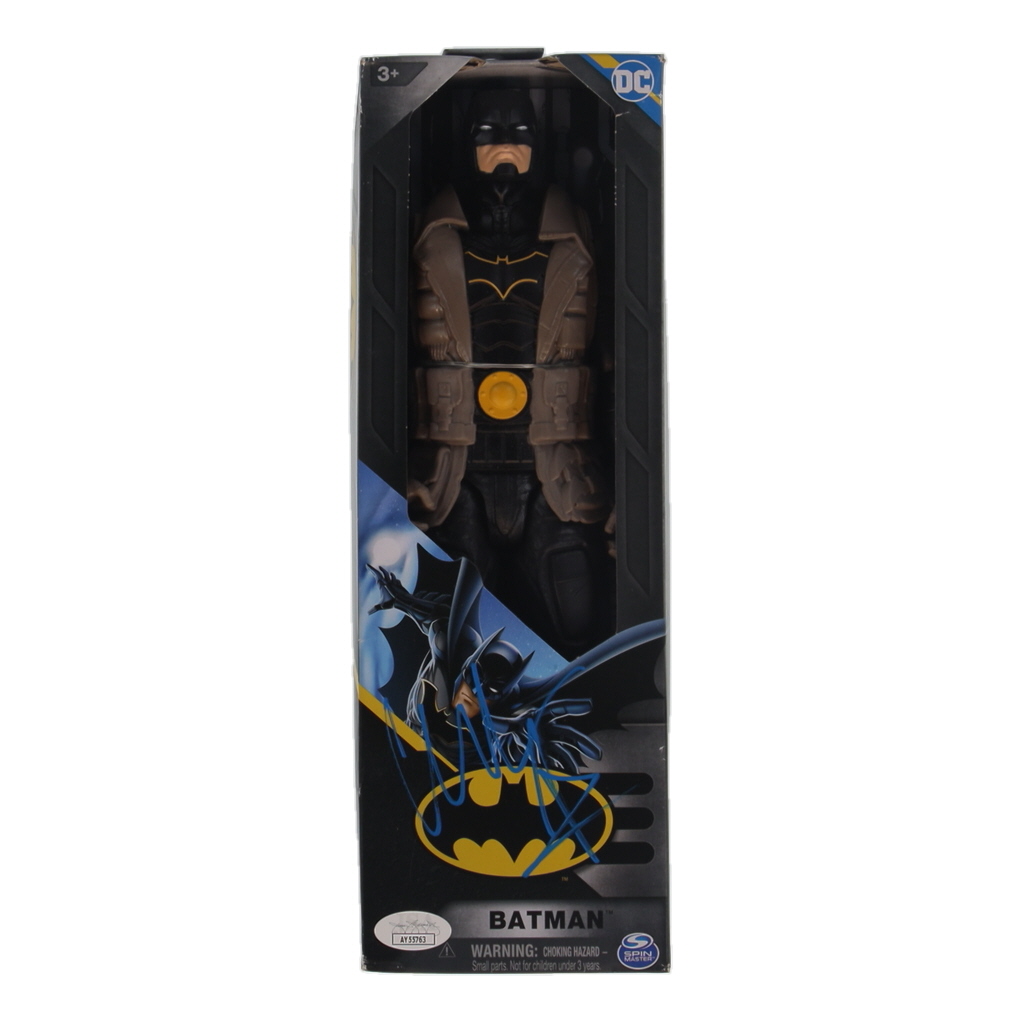 Figure measures approximately 11" tall and has been hand-signed on the packaging by Christian Bale. Please note, there are tears and scuffing throughout the packaging.