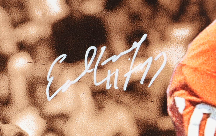 Canvas print measures 19" x 27" in size and has been hand-signed and inscribed by Earl Campbell (HOF).