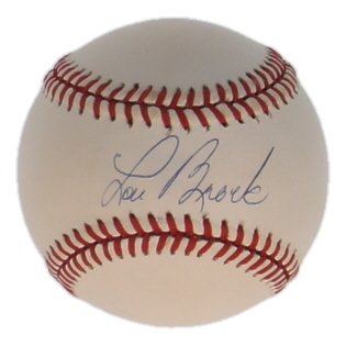Rawlings Official National League Baseball. Hand-signed by Lou Brock (D. 2020, St. Louis Cardinals, HOF). Please note, the baseball is stained and naturally toned.