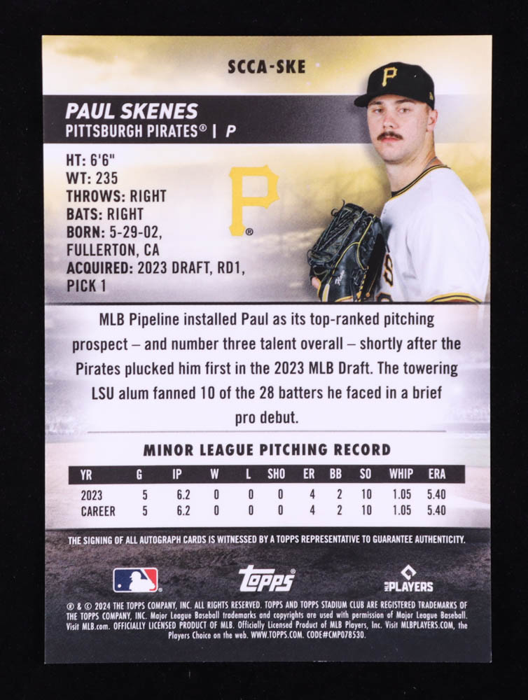 Paul Skenes 2024 Stadium Club Autograph #SCBAPS RC