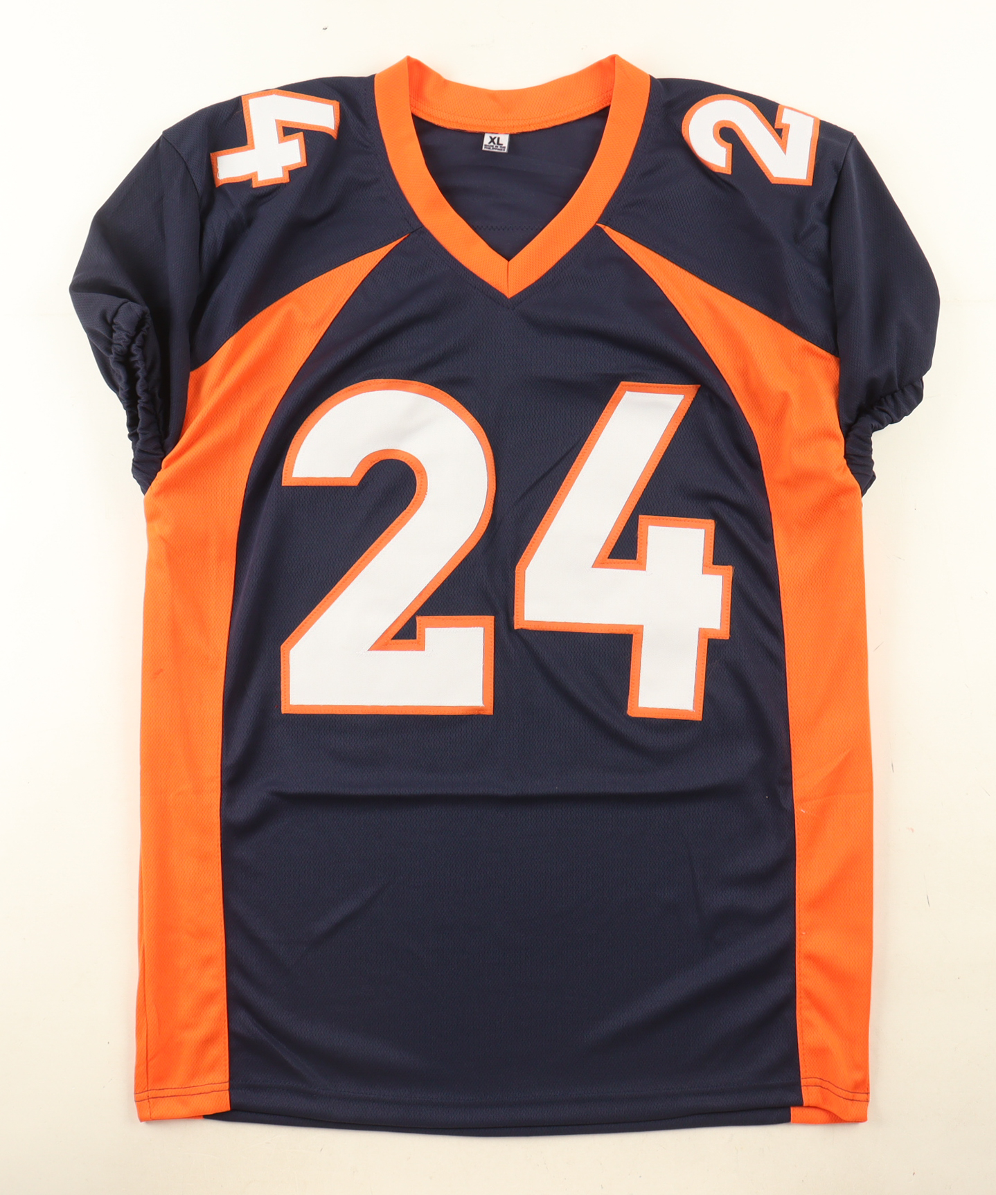 Custom jersey with everything sewn on, size XL. Hand-signed by RJ Harvey (Denver Broncos).