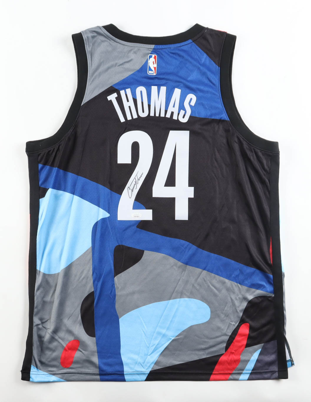 Nike jersey with everything pressed on, size 52. Hand-signed by Cam Thomas (Brooklyn Nets). Please note, the signature has bled.