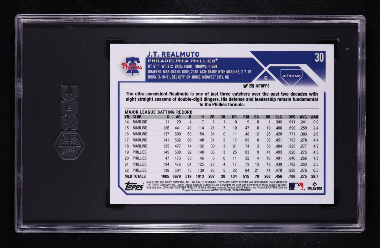 JT Realmuto 2023 Topps Chrome Aqua Refractor #30 #197/199 (SGC 9)