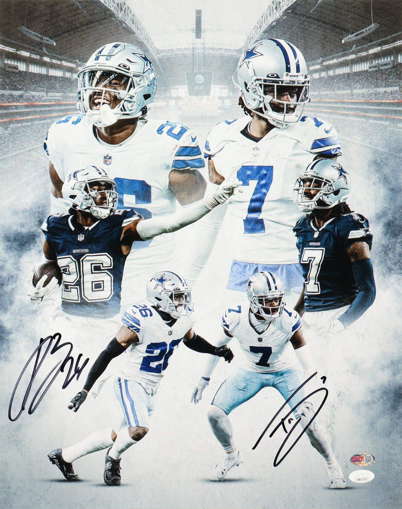 Photo measures 16" x 20" in size and has been hand-signed by DaRon Bland (Dallas Cowboys) and Trevon Diggs (Dallas Cowboys).