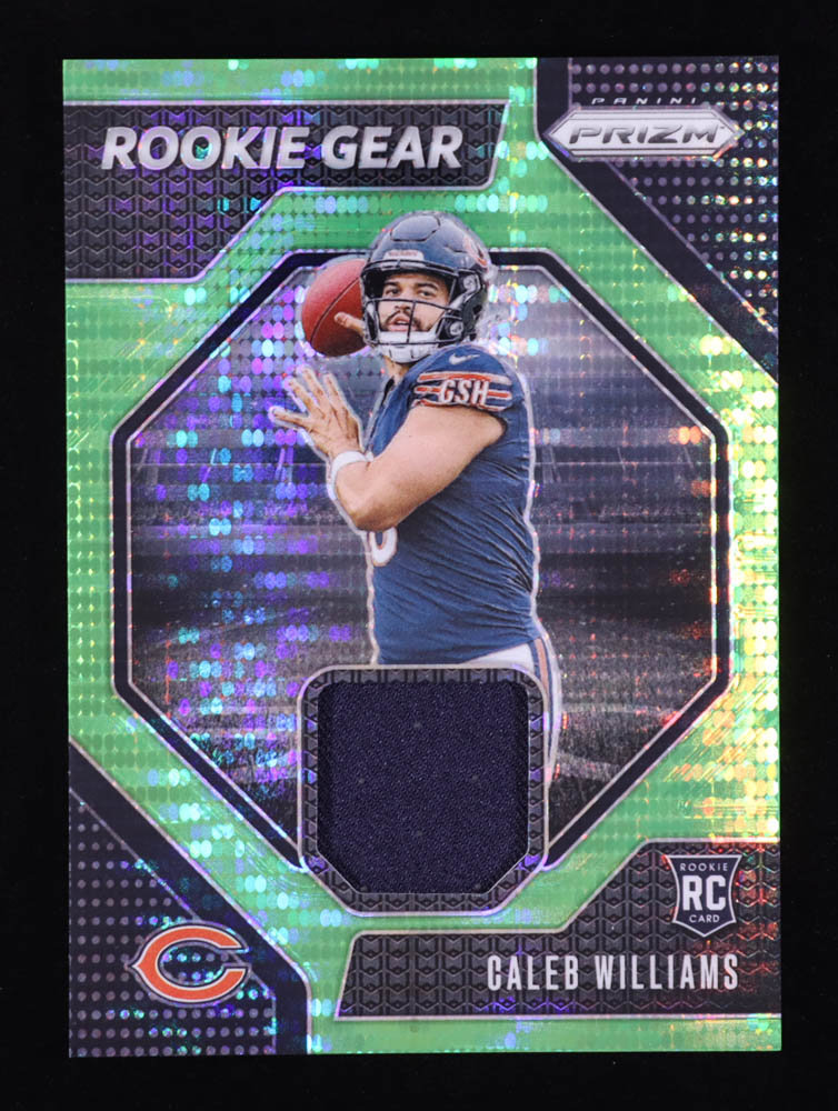 Caleb Williams 2024 Panini Prizm Rookie Gear Neon Green Pulsar #1 RC