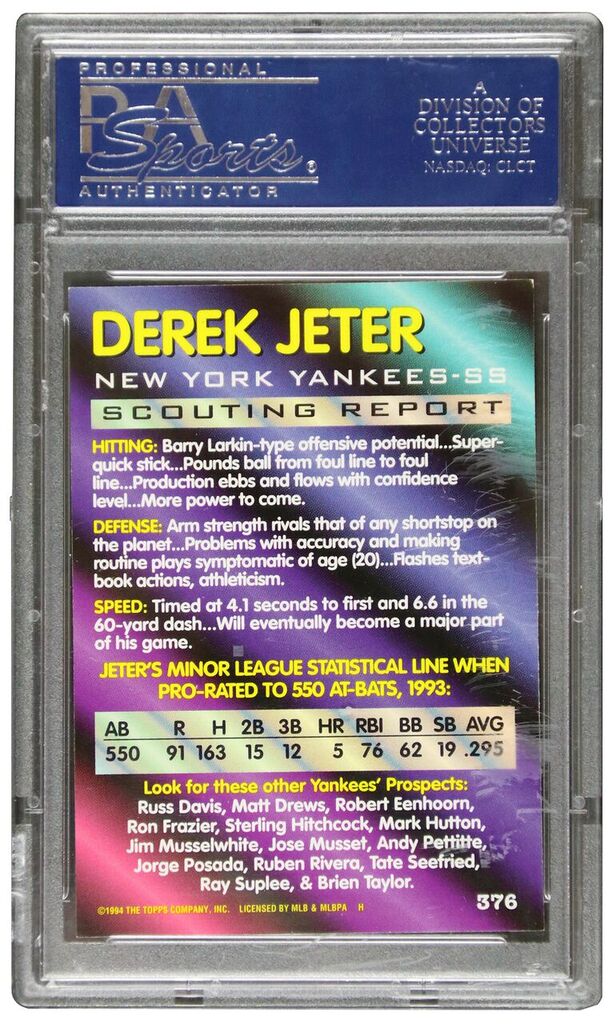 Derek Jeter Signed 1994 Bowman #376 Baseball Card (PSA Encapsulated)