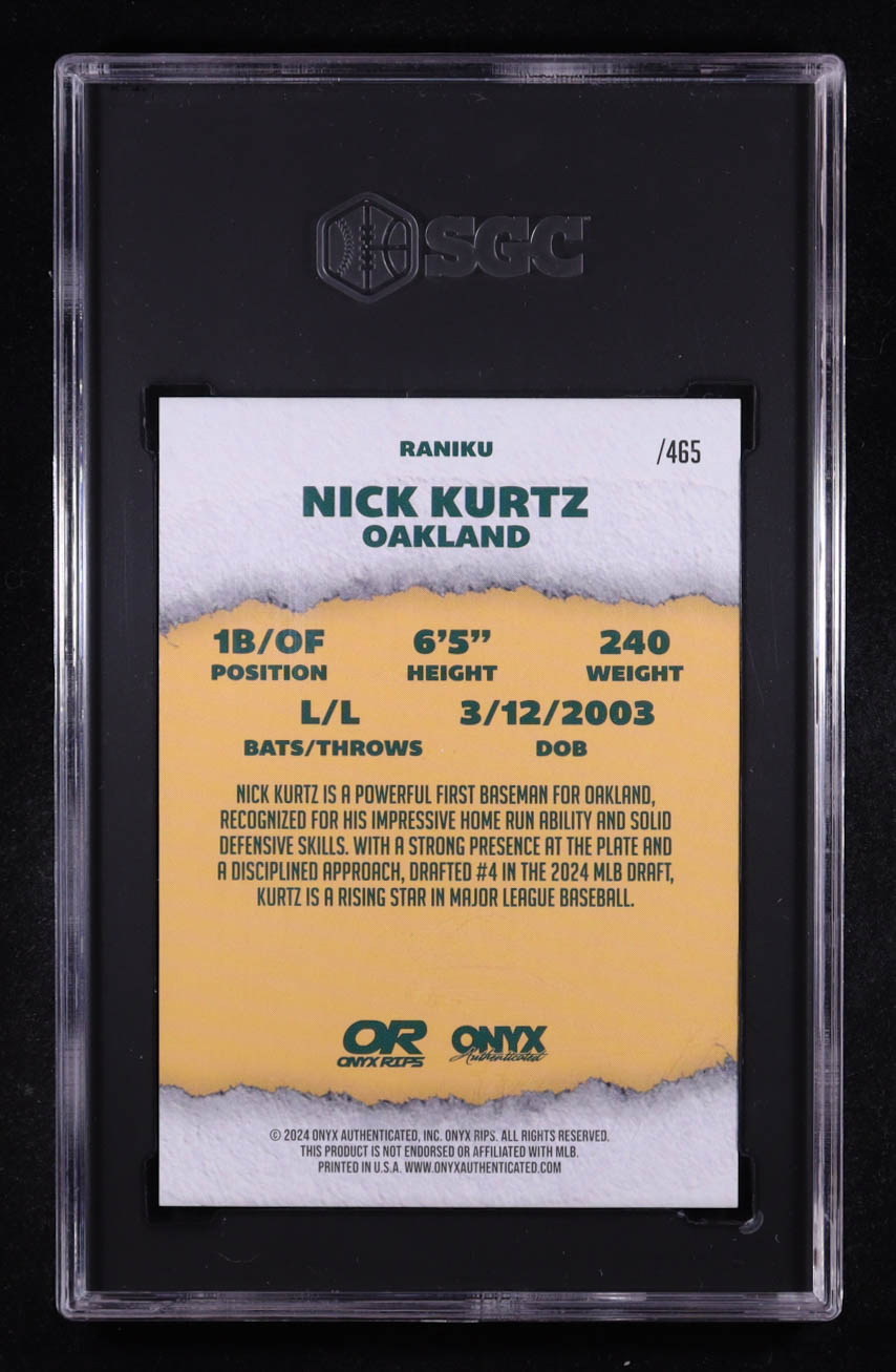 Nick Kurtz 2024 Onyx Rips /465 Autographs #Raniku RC (SGC 10 | Autograph Grade SGC 10)