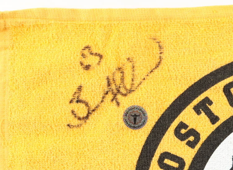 2018 Boston Bruins playoffs rally towel has been hand-signed by Brad Marchand & Patrice Bergeron. Please refer to photos for more details on the condition of the item.
