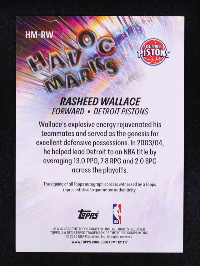 Rasheed Wallace 2025 Topps Havoc Marks Green Rainbow #HM-RW #58/99