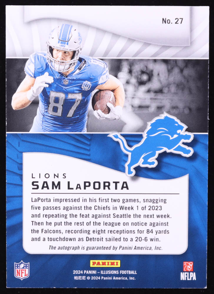 Sam LaPorta 2024 Panini Illusions Trophy Collection Signatures #27 #1/10